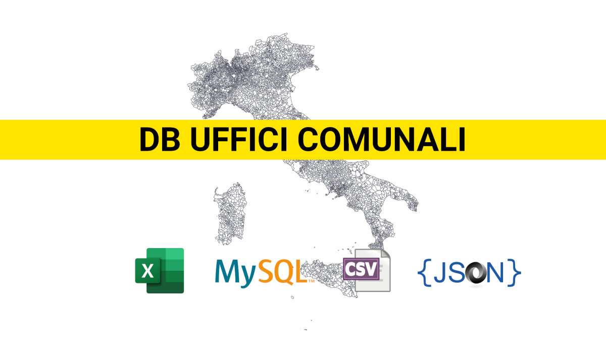 Scarica il database demo degli uffici comunali in formato Excel, CSV, SQL e JSON.